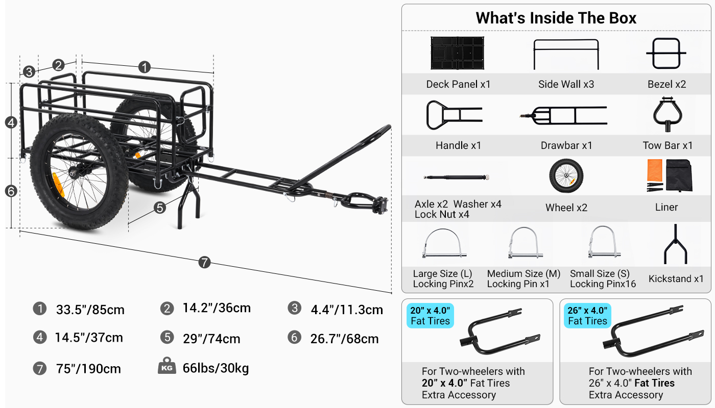 Feature / Model | Electric Trike Trailer (Standard) | 20” Fat Tire Electric Bike Trailer | 26” Fat Tire Electric Bike Trailer |